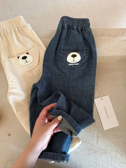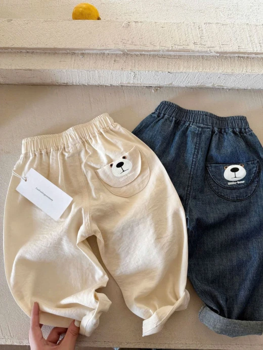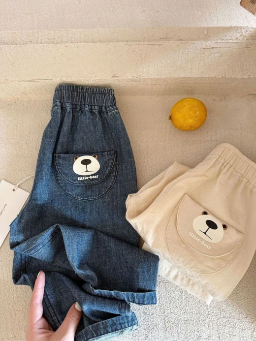 #0604c34 trắng (vải đũi tencel) giá 137k xanh denim (jeans giấy) giá 176k chốt 0604 ======== QUẦN SUÔNG TÚI GẤU MMGGBABY ✔2 màu : trắng , xanh denim ✔Size : 90-140 Bảng size tham khảo 90: 10-13kg 100: 13-15kg 110: 15-17kg 120: 17-20kg 130: 20-25kg 140: 25-30kg 🚛 Hàng od 2-4w, chốt 0604