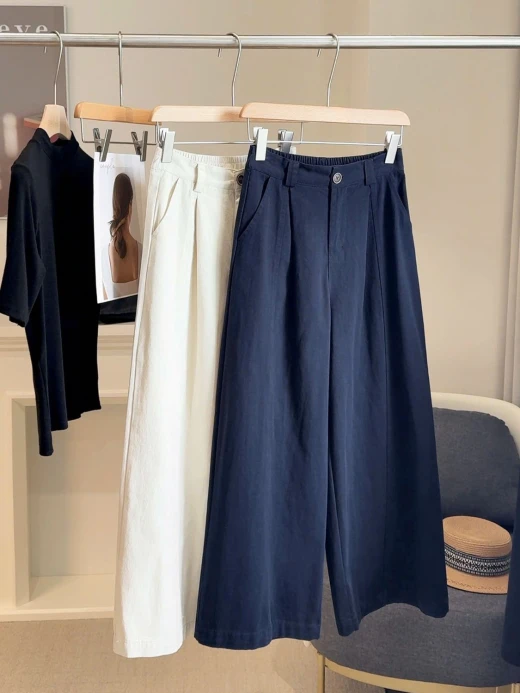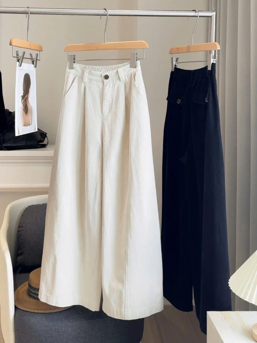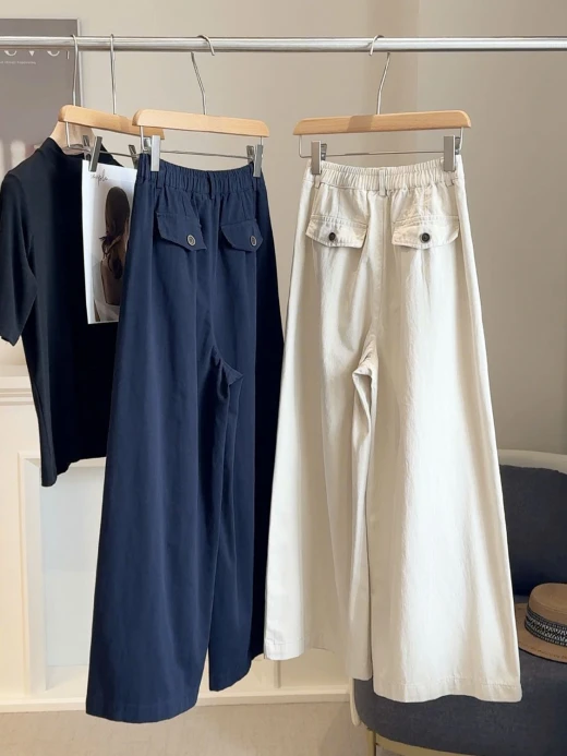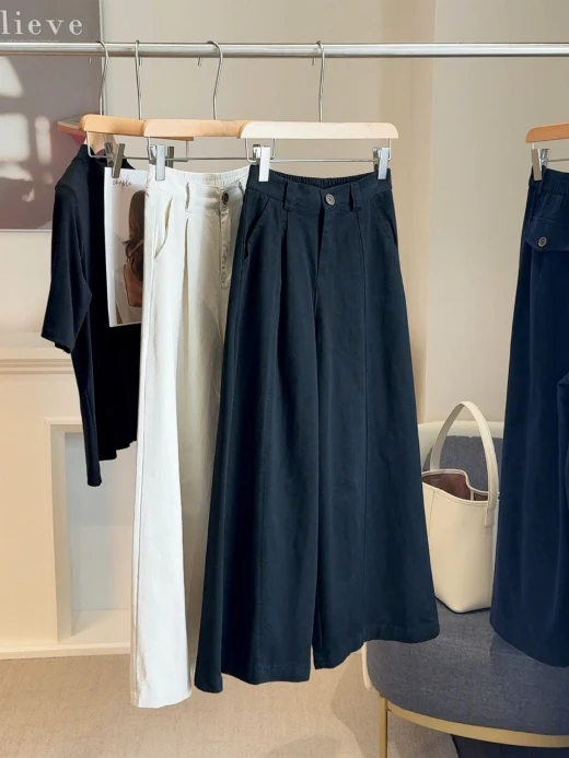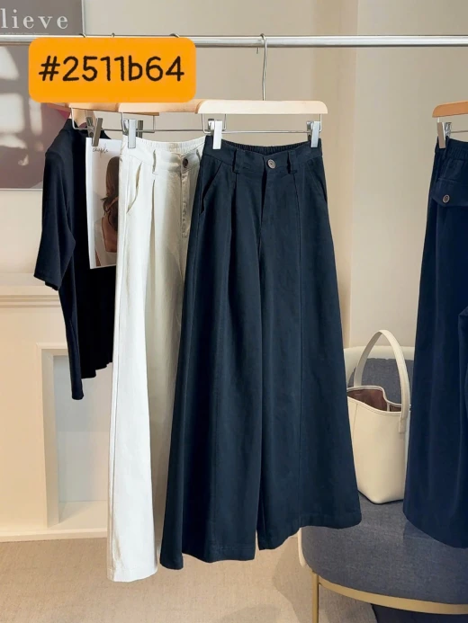 #2511b64 QUẦN THÔ ỐNG RỘNG CẠP LƯNG CHUN ANNA ✔3 màu : kem, xanh đen, đen ✔Size : M-XL 🌸 giá 224k 🐬 chốt 25/11