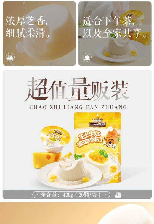 #2212b46 SET 2 TÚI PUDDING TRÂN CHÂU SỮA BA CON SÓC Pudding trân châu sữa béo mịn, thơm dịu, ăn mát lạnh rất đã. Phù hợp ăn vặt, tráng miệng, dùng cho cả người lớn & trẻ em 🌸 giá 90k/2 túi (tổng 840g) 🐬 chốt 2212