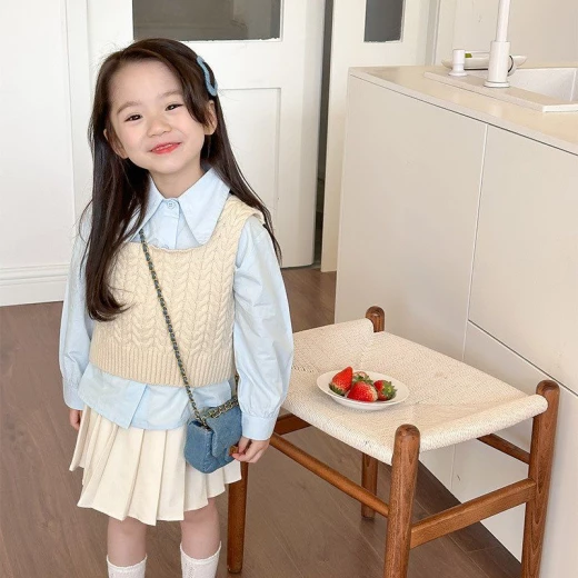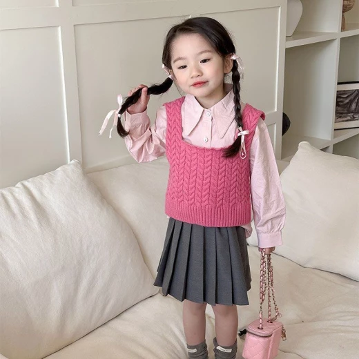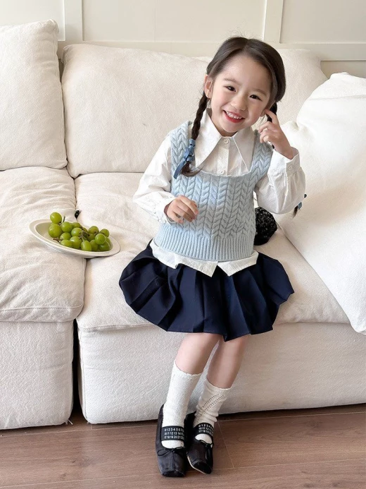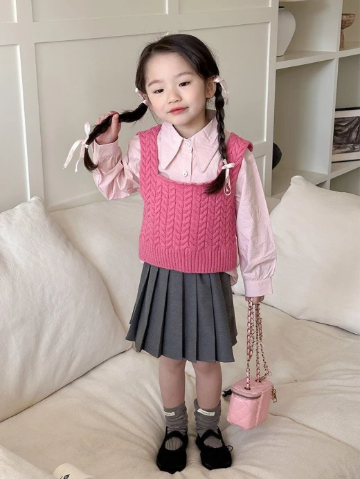 #2301a09 ? ? Set 3 chi tiết gile mix áo sơ mi - chân váy xếp ly xinh cho bé Mẹ nào có bé gái chắc chắn sẽ mê như em. ☘ Cưng muốn xỉu luôn ạ. Áo gile 4 màu: Vàng, Be, Xanh, Hồng Sơ mi 4 màu: Hồng, Xanh, Trắng, Vàng Chân váy: Đen , Trắng, Hồng, Xanh, Xám ? MẸ thoải mái lên đồ xinh cho con nha, tone màu bèo điệu đà tone sure tone với em váy dễ thương ? Sz: 90-140 Giá: áo gile 96k, sơ mi 125k, váy 97k chốt 23.01