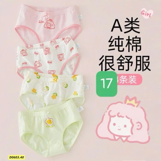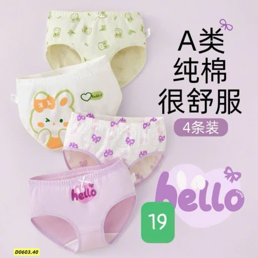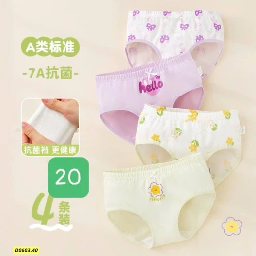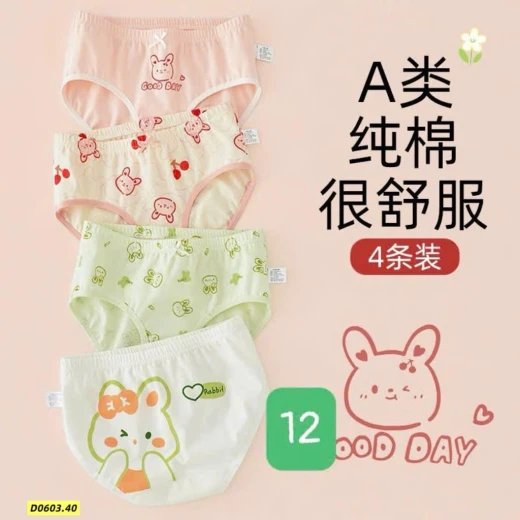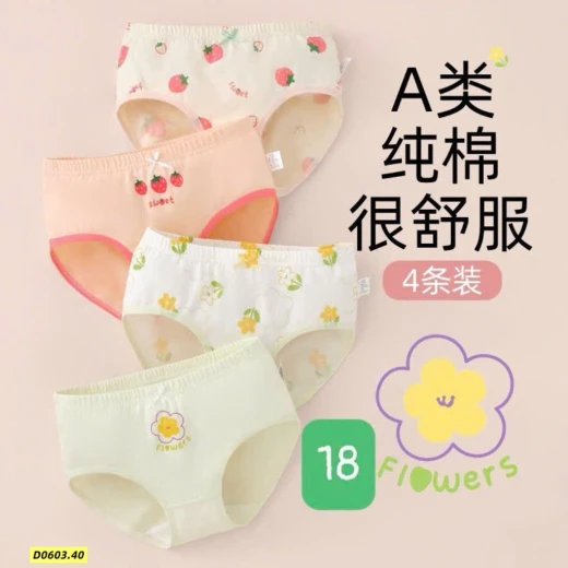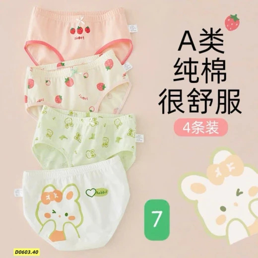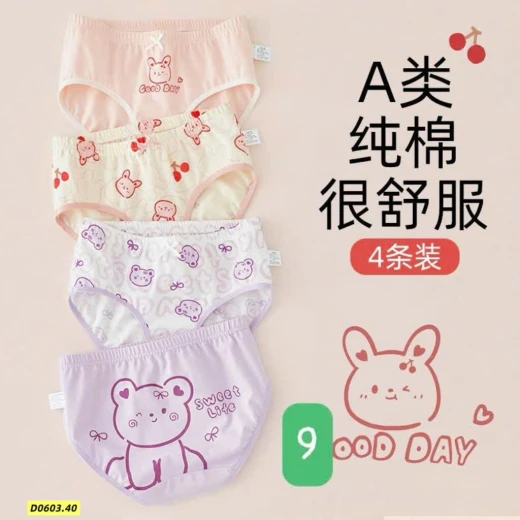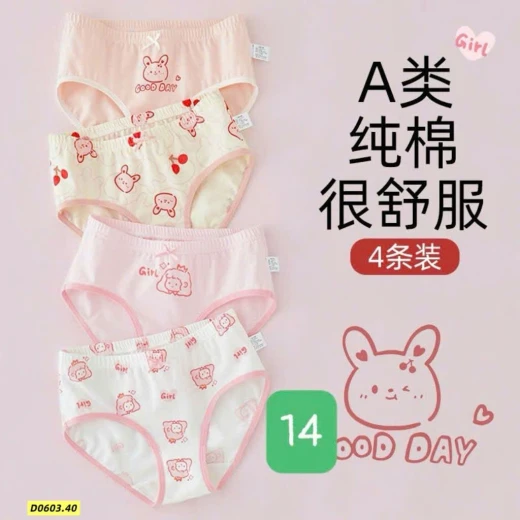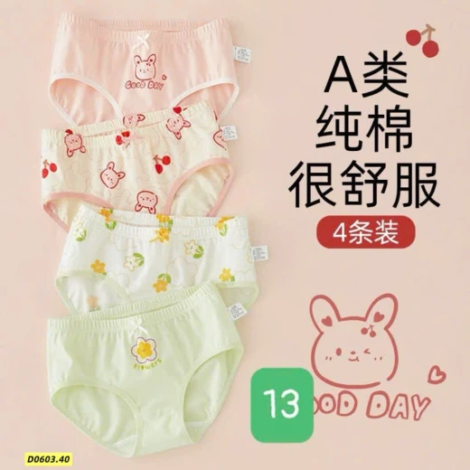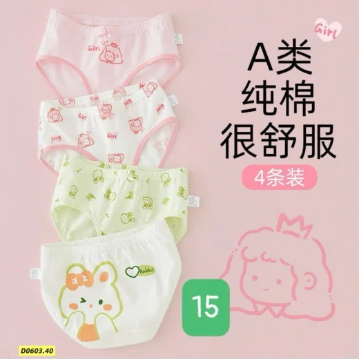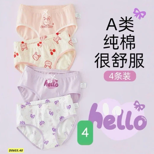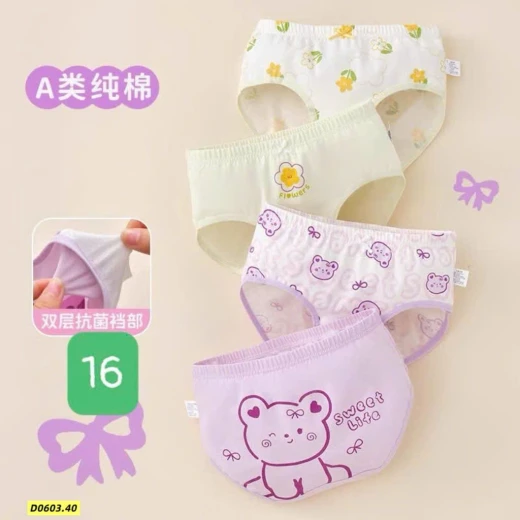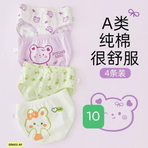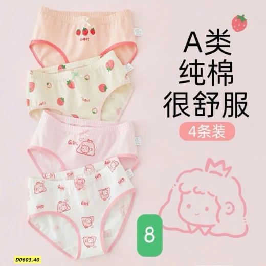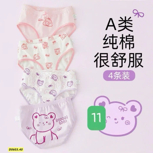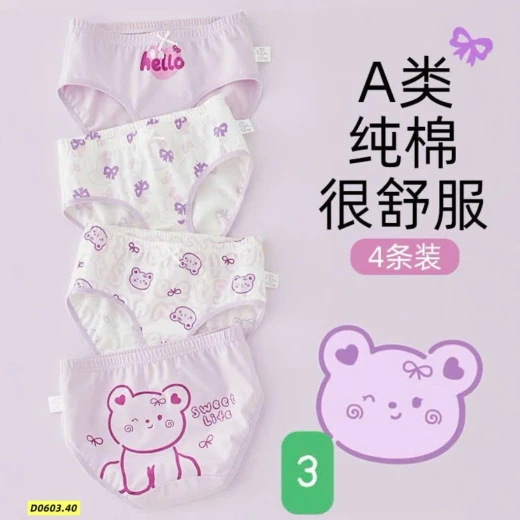 #0603c50 🌈SET 4 QUẦN CHIP COTTON BÉ GÁI 🍑Quần chất liệu cotton nguyên chất siêu an toàn và thoải mái .Màu sắc hoạ tiết xinh xắn dễ thương . Tới kì phải nhớ thay chip cho con nha mẹ ơi🥰 🍓20 mẫu đánh số ✅sz M-3XL M : 8-12kg cao 85-100cm L : 13-17kg cao 100-115cm XL : 18-22kg cao 115-130cm 2XL : 23-32kg cao 130-145cm 3XL : 33-42kg cao 145-155cm 140k/ set Giá: 83k/set Chốt 0603