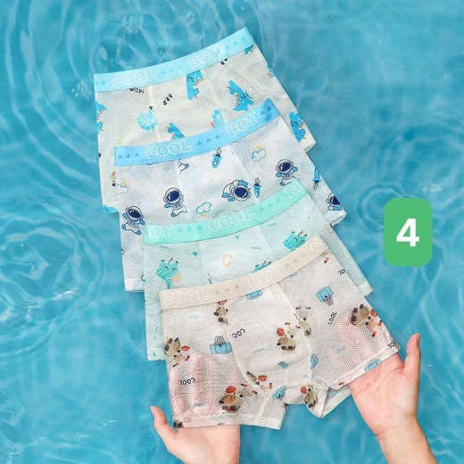 #2506m14 ?SET 4 QUẦN LÓT THOÁNG KHÍ CHO BÉ ?Lâu lâu em gom chuyến quần lót cho bé trai nha, toàn hình xinh lắm ạ. Đảm bảo bé nào nhận cũng ưng nha Chất mềm, thoáng khí, thấm hút mồ hôi bé mặc thỏa mái dễ chịu ạ ?6 màu đánh số ✅Size 110-170 110: 10-15kg 120: 15-21kg 130: 21-27kg 140: 27-34kg 150: 34-40kg 160: 40-47kg 170: 47-55kg ? giá 82k ⏰ chốt 25.06