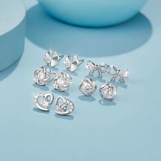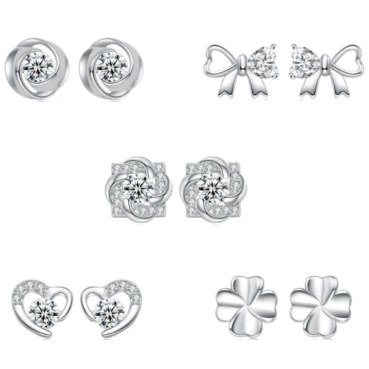#0104c39 SET 5 ĐÔI HOA TAI BẠC AGOVSKI Chất liệu bạc 999. Thoải mái mix match mỗi ngay 1 phong cách với set 5 đôi hoa tai Agovski xinh xắn 🌸 giá 175k 🐬 chốt 1/4