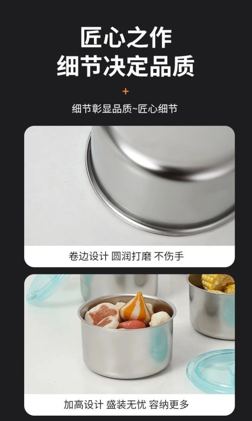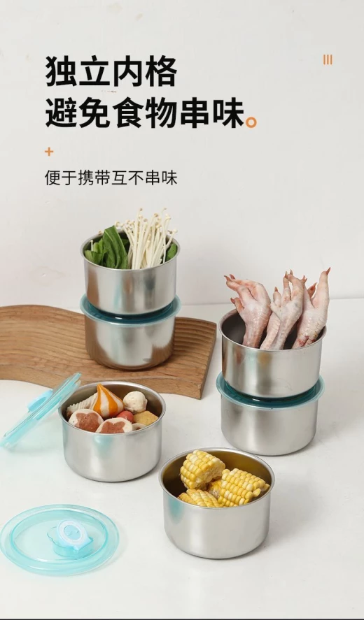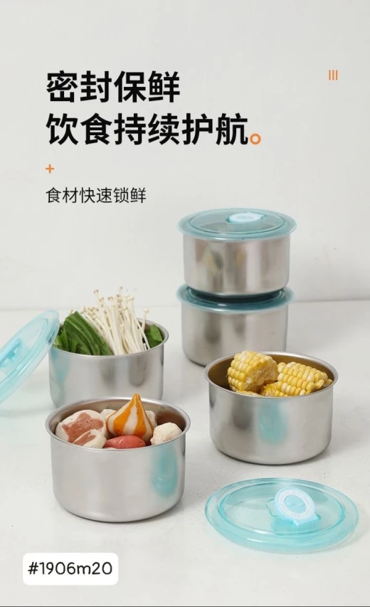 #1906m20 ??SET 5 HỘP INOX KÈM NẮP NHỰA LOẠI TRÒN ❣️Hôm nay e chơi lớn bán câu like đây haha Loại này dùng làm cặp lồng đựng cơm, canh mang đi làm quá tiện Nhất là có nắp chống tràn Để thực phẩm cực bền + sạch sẽ Inox 304 xịn xò. Đặc biệt phù hợp ăn lẩu nướng or mang đồ đi dã ngoại ạ ?kt 10x6.5cm ? giá 67k/set 5 hộp ? chốt 19/6