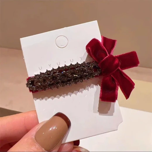 #2212b54 Tết cứ phải có tí đỏ lấy may , hay tí lấp lánh ♥️♥️Set 6c Kẹp tóc nơ nhung cao cấp #59k/set 6c 👉sang trọng với đá pha lê xám, kiểu dáng ngọt ngào và thanh lịch, kẹp tóc bên hông, kẹp tóc mái Giá: 48k CHỐT 2212