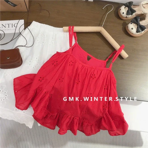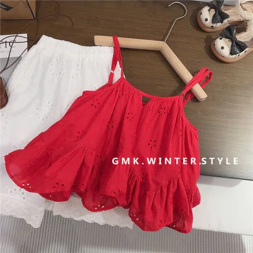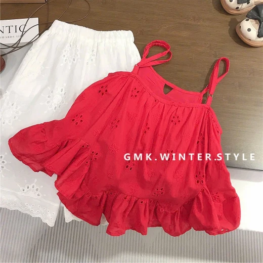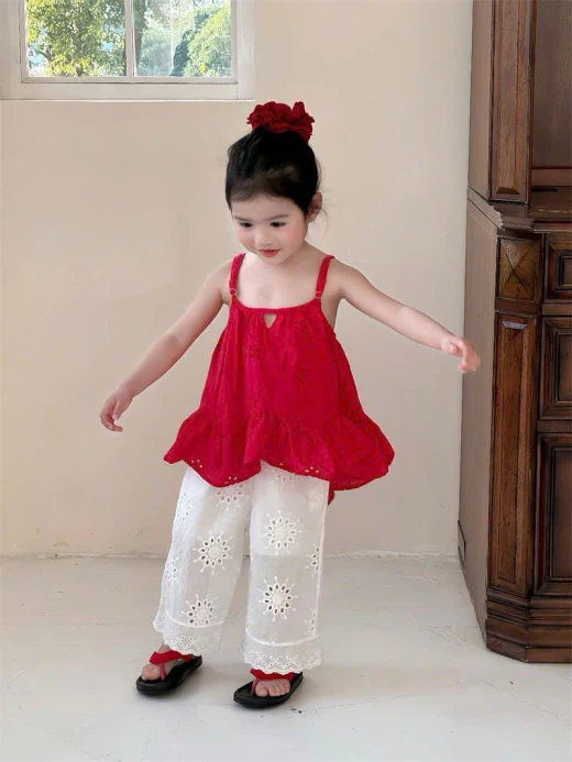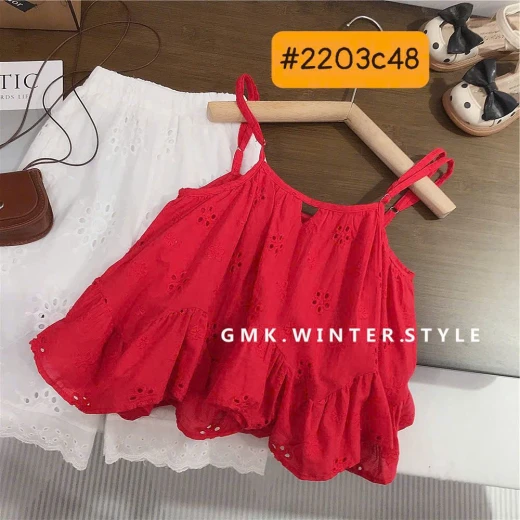 #2203c48 SET ÁO 2 DÂY ĐỎ MIX QUẦN TRẮNG Set đồ cực xinh cho bé yêu mùa hè này ✅sz 90-140 🌸 giá áo: 172k quần: 154k 🐬 chốt 2203