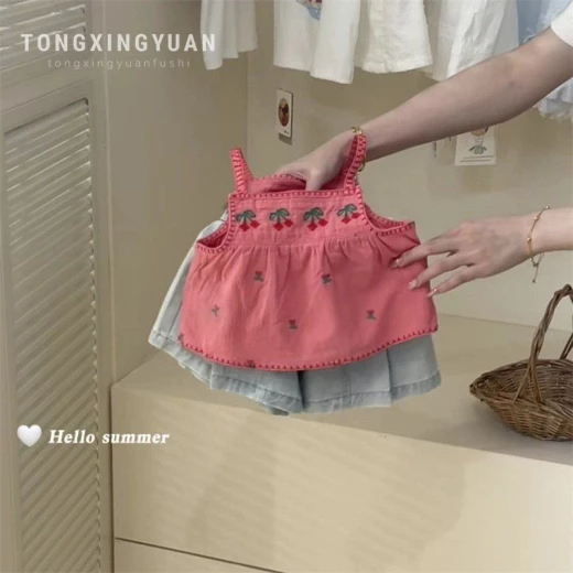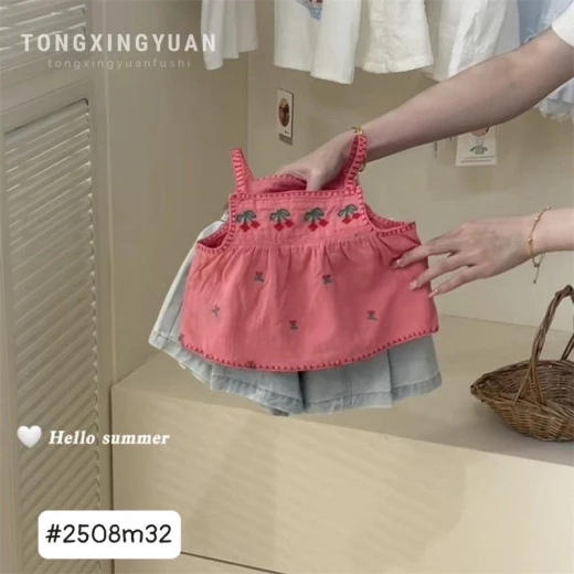 #2106m32 ?SET ÁO DÂY CHERRY PHỐI QUẦN SHORT JEAN ỐNG RỘNG ? Set cưng xỉu các mẹ ơi, bé diện yêu lắm ạ ? sz 80-130 #235kk/set , lẻ áo xxk, quần xxk. gía: áo 108k, quần 112k, set 187k chốt 21.06