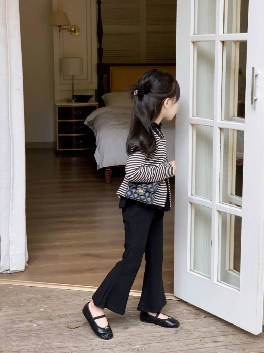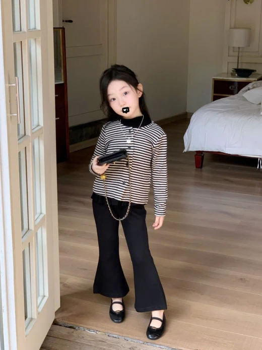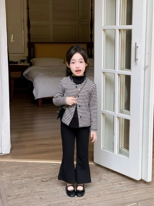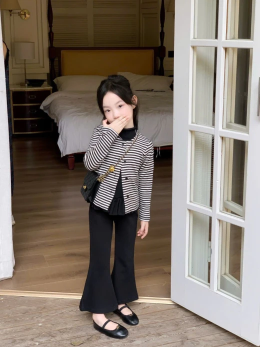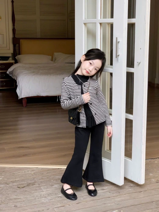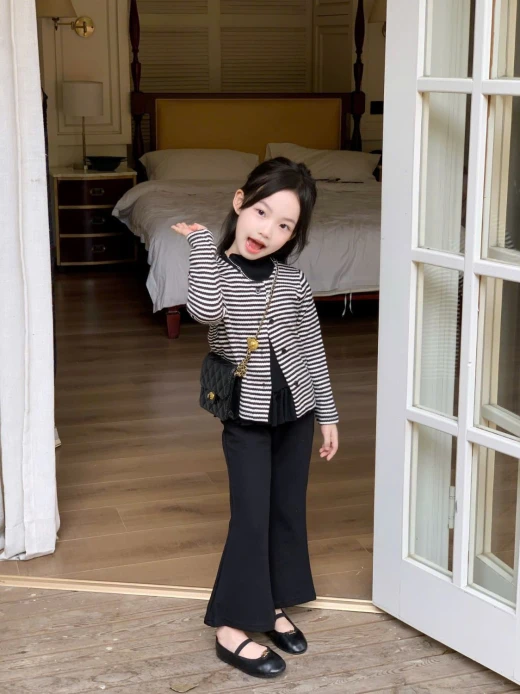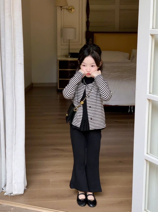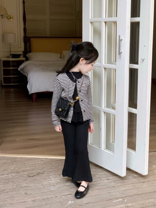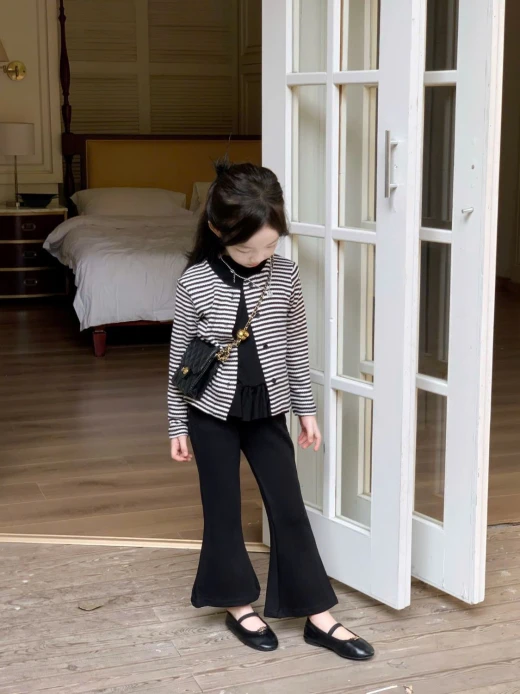 SET ÁO KHOÁC KẺ MIX ÁO ĐEN + QUẦN ỐNG LOE BG