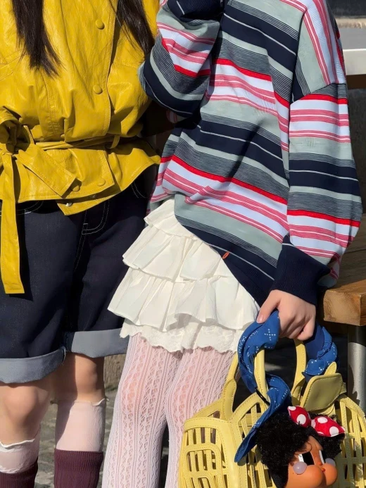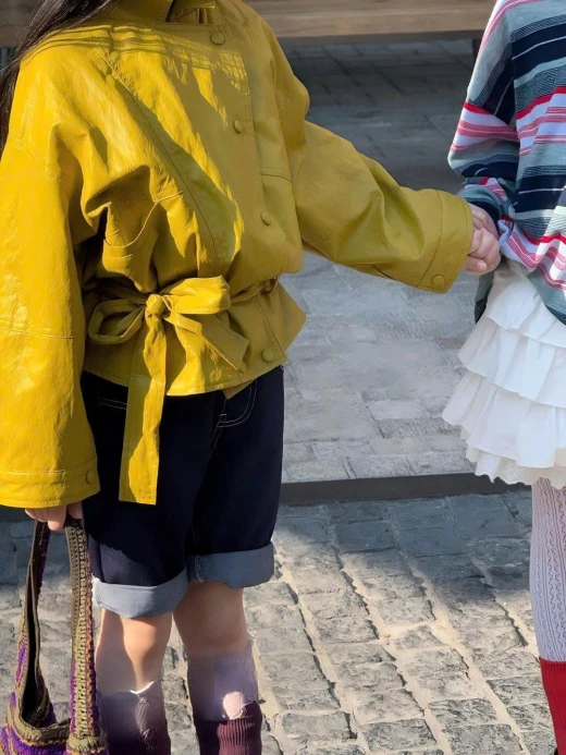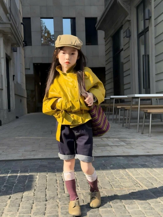SET ÁO KHOÁC VÀNG QUẦN SHORT + ÁO POLO KẺ CHÂN VÁY