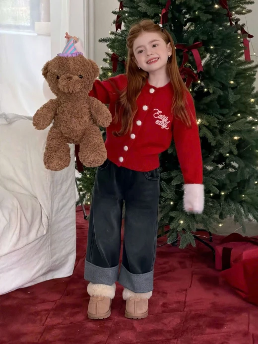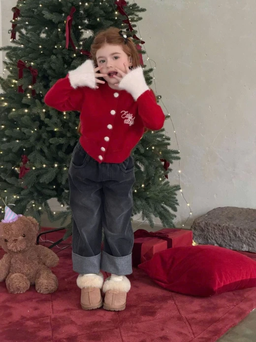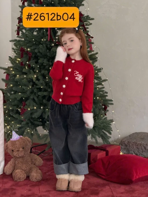 #2612b04 SET ÁO LEN ĐỎ MIX QUẦN JEAN GẤP GẤU BG Outfit xinh xắn – mood bé nâng cấp 200% sz 90-150 🌸 giá áo: sz 90-140: 180k , sz 150: 192k quần: sz 90-140: 213k , sz 150: 227k 🐬 chốt 2612