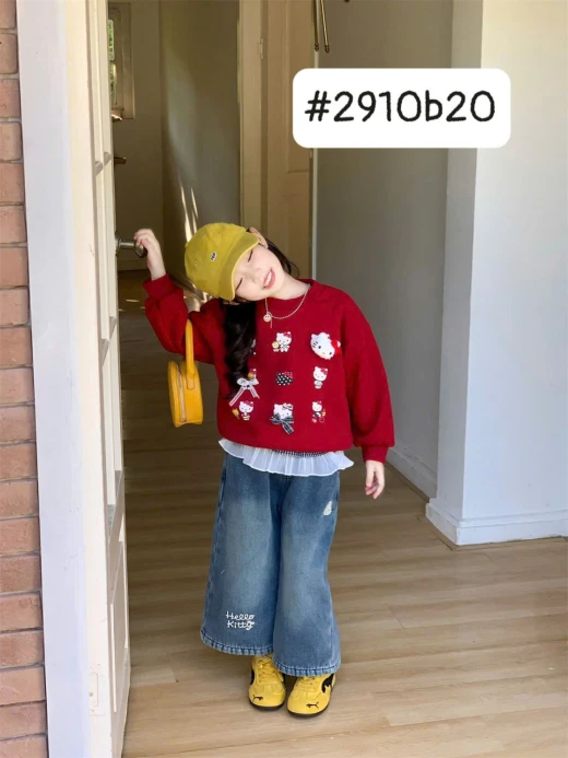 #2910b20 SET ÁO NỈ KITTY MIX QUẦN JEAN BG Mặc đi chơi, đi học hay chụp ảnh đều xinh ngất ngây ✅sz 90-150 90: 11-13kg 100: 13-15kg 110: 15-17kg 120: 17-20kg 130: 20-25kg 140: 25-30kg 150: 30-35kg 🌸 giá áo: 169k quần: 207k 🐬 chốt 2910