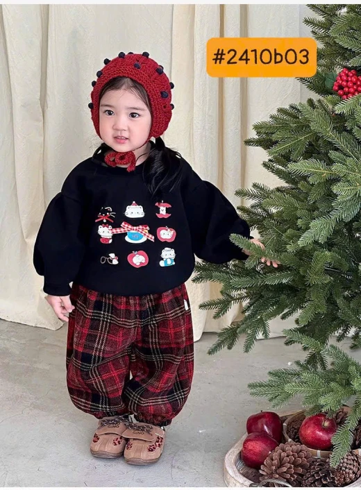 #2410b03 SET ÁO NỈ KITTY MIX QUẦN KẺ CARO BG Bé mặc đi học, đi chơi hay ở nhà đều cực kỳ nổi bật! ✅sz 73-100 73: 7-9kg 80: 9-11kg 90: 11-13kg 100: 13-15kg 🌸 giá áo: 193k quần: 174k 🐬 chốt 24/10