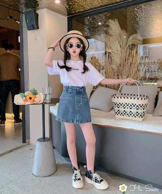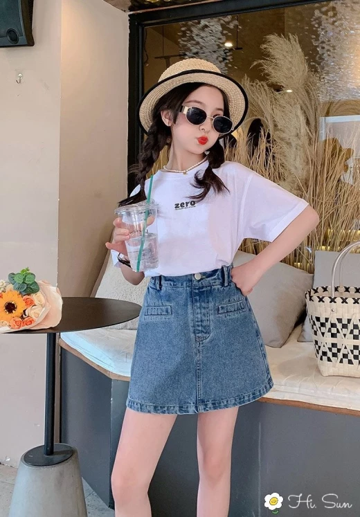 #2202m03 SET ÁO PHÔNG ZERO KÈM CHÂN VÁY JEAN BÉ GÁI nhà e lên full set cho các mom đây a. Set gồm áo cotton in Zero cực kỳ sắc nét mix cùng Quần giả váy bò cho bé gái đẹp quá ?? Dáng A dễ mix đồ ạ. Tách set lẻ mix đồ cực tiện Chất bò QC đẹp vô cùng nhaaaa Em gom hàng china xịn đẹp nha c em. Size 120-170 ??chân váy : 125k Set áo + chân váy : 185k Chốt 22.02
