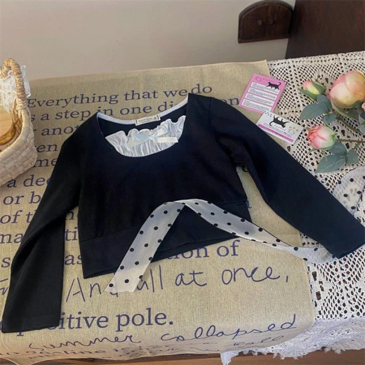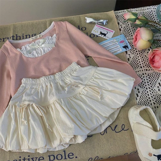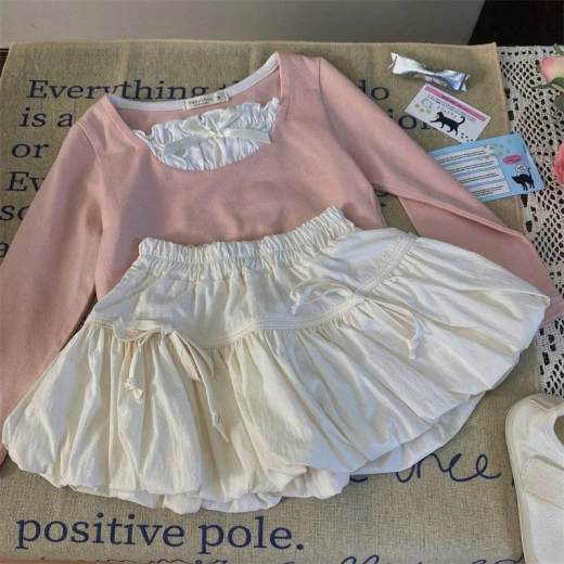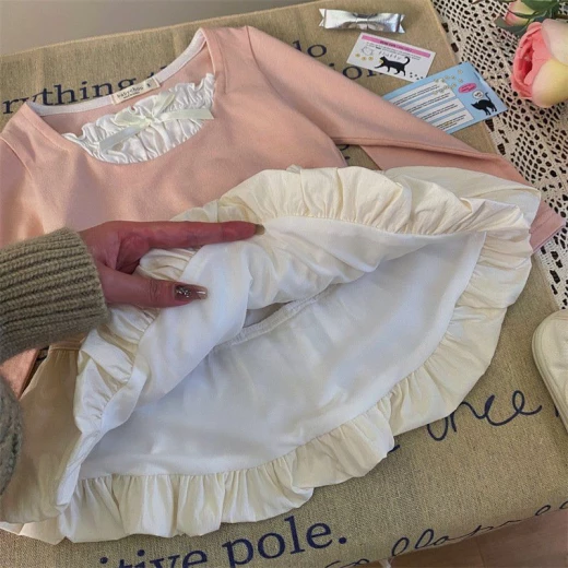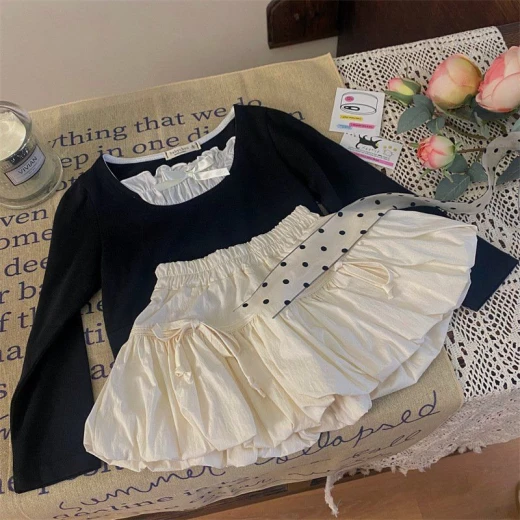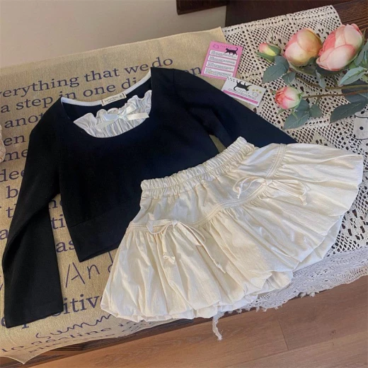 ? Set áo thun dài tay croptop mix chân váy nhún bèo điệu đà.
