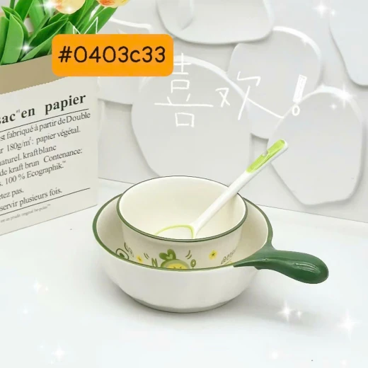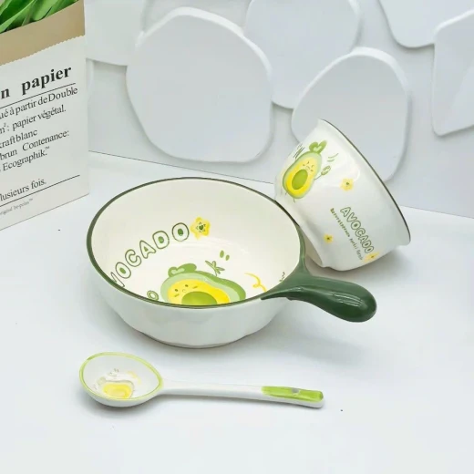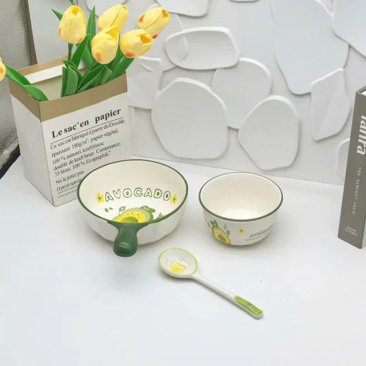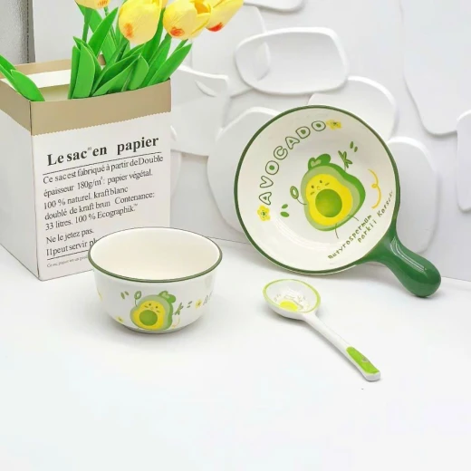 #0403c33 Set bát & thìa , chén Avocado xinh xắn 🥑Ăn cháo, mì hay tráng miệng đều thấy yêu đời hơn 💚 Men sứ mịn – cầm chắc tay – họa tiết quả bơ siêu cute 👉 Vừa dùng, vừa decor bàn ăn cực chill Giá 119k/ set 3 món 🌸 giá 75k 🐬 chốt 4/3
