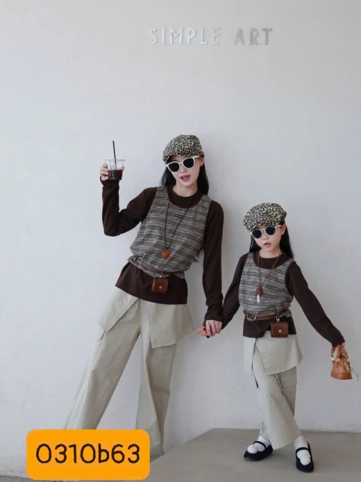 #0310b63 SET BỘ 3 CHI TIẾT CHO MẸ VÀ BÉ Đơn giản – lịch sự – dễ phối đồ Mặc đi chơi, đi dạo, đi du lịch gia đình đều cực kỳ hợp! ✅bé sz 90-140 90: 11-13kg 100: 13-15kg 110: 15-17kg 120: 17-20kg 130: 20-25kg 140: 25-30kg mẹ sz M dưới 65kg 🌸 giá áo kẻ bé: 92k áo kẻ mẹ: 132k áo nâu bé: 112k áo nâu mẹ: 152k quần bé: 190k quần mẹ: 250k 🐬 chốt 0310