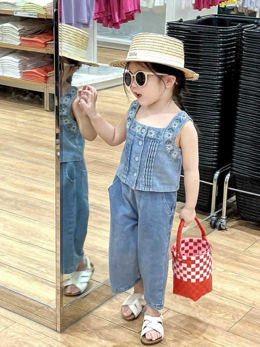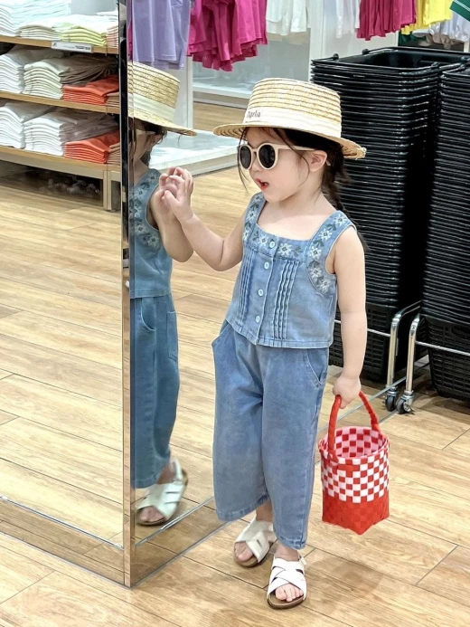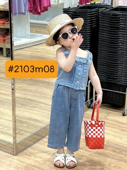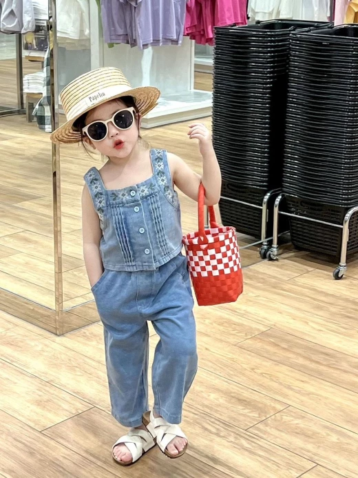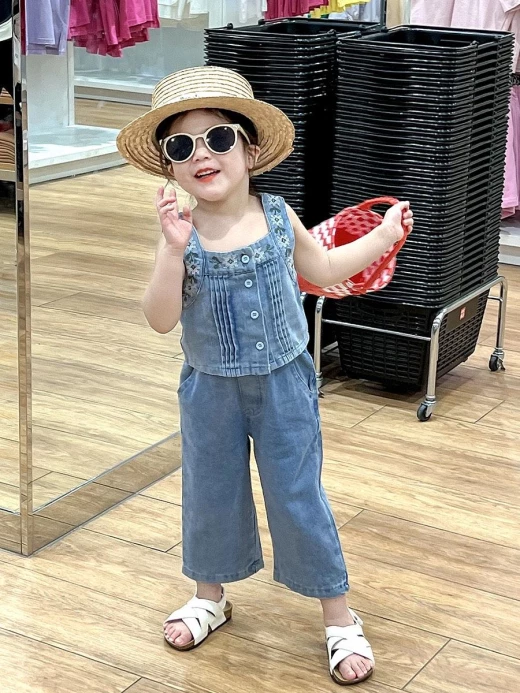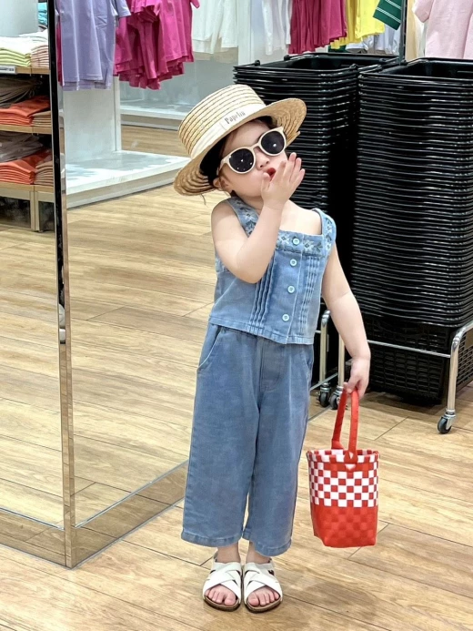 #2103m08 SET DENIM 2 CHI TIẾT CHO BG ??? Chùi ui mẹ còn mê nữa là em??? Set jean 2 chi tiết xinh xỉu mặc đi học đi chơi đều chất lừ luôn nha! Phối các kiểu cực sang chảnh nhé ❤️set gồm: áo 2s jean + quần jeans như ảnh Size: 100-140 Bảng sz tham khảo: 100: 11-15kg 110:15-18kg 120:18-21kg 130:21-25kg 140:25-30kg ?giá : 208k Chốt 21.03