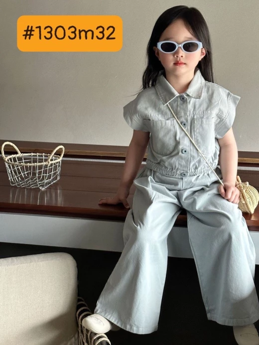 1303m32-SET ĐỒ DENIM TAY NGẮN CHO BÉ