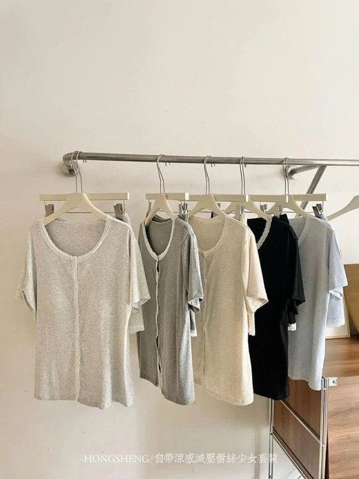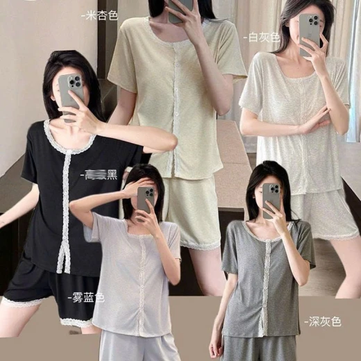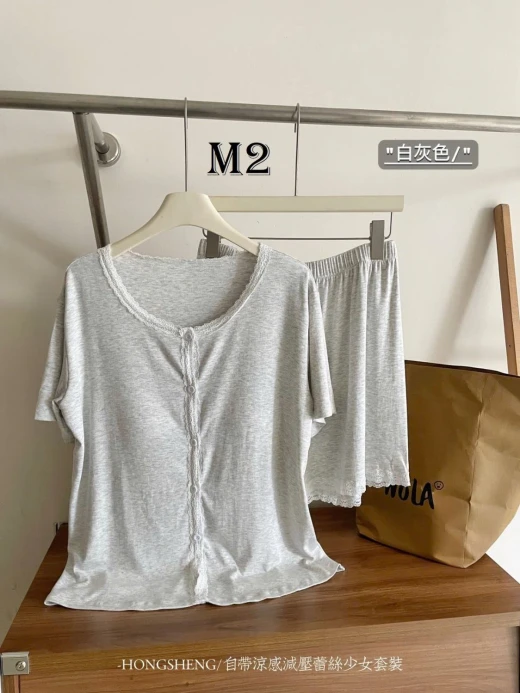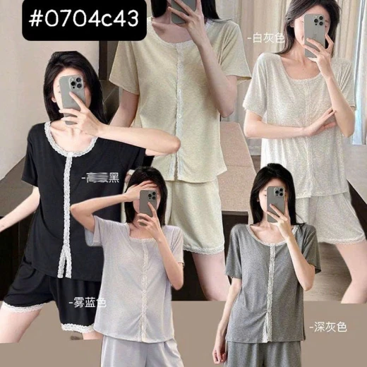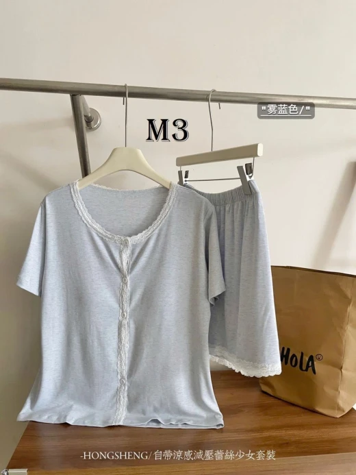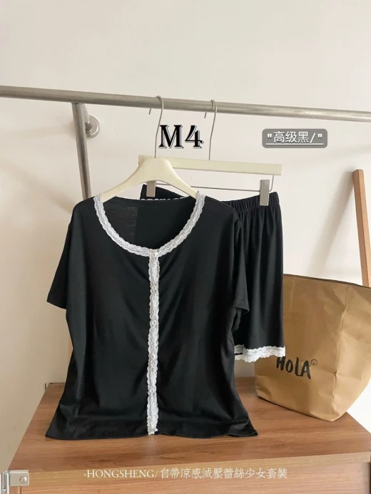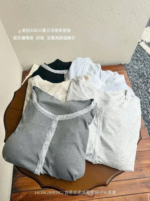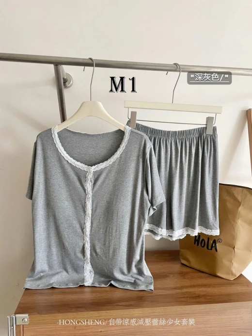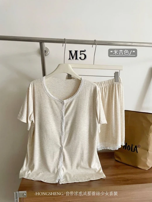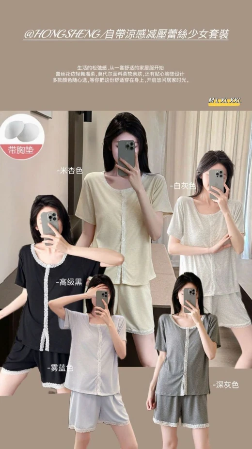 #0704c43 #195k/c chốt 0704 ======== SET ĐỒ NGỦ THUN PHỐI REN HONGSHENG Thiết kế set đồ ngủ gồm áo tay ngắn phối ren nhẹ nhàng cùng quần short lưng thun thoải mái, mang lại cảm giác nữ tính và dễ chịu khi mặc. ✅️ 5 màu đánh số ✅️ Size: M-2XL Bảng size tham khảo: M: 40-59kg L: 60-69kg XL: 70-79kg 2XL: 80-80kg 🚛 Hàng od 3-6w, chốt 0704