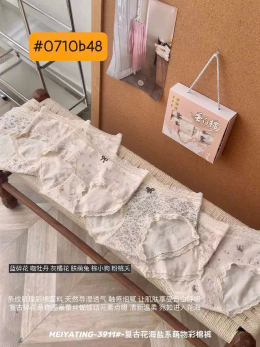 #0710b48 🌸💖 Set hộp 6 Quần chip nữ MEIYATING – Sweet & Vintage #179kk ✨ Thiết kế hoa nhí retro, ngọt ngào mà vẫn quyến rũ ✨ Chất vải mềm mại – thoáng khí – co giãn tốt, ôm dáng thoải mái cả ngày ✨ Dáng tam giác lưng vừa, tôn dáng vòng 3 tự nhiên ✨ Mặc đẹp – dễ chịu – chuẩn gu “nữ tính muối biển” ✔️Sz L 42-60kg Sz Xl 60-70kg Giá: 128k/set chốt 0710