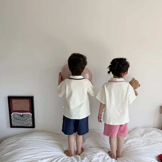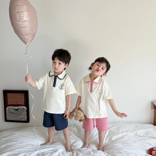 #2903m32 SÉT POLO CỔ SEN PHỐI VIỀN ✔2 màu : than - hồng - sz 90-140 ? giá 164k ? chốt 29/3