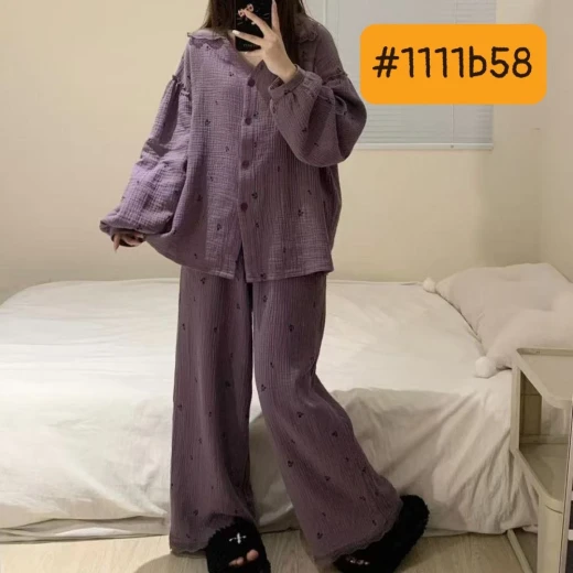 #1111b58 Mê cái chất xô muslin mềm mướt này. ‼️ ‼️ Set pzm Tone tím lạnh dịu sang lắm 💜. Ngủ dậy sớm săn cái deal SALE BỘ NGỦ MÙA TÍM SIÊU ĐẸP, e chỉ săn được 20bộ thôiii các c nhen. ☑️ Bảng size tham khảo M: 40-45kg L: 45-52kg XL: 52-60kg 2XL: 60-70kg ============ chốt 1111 GIÁ 119k/1b