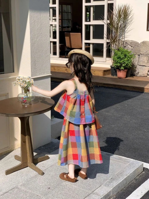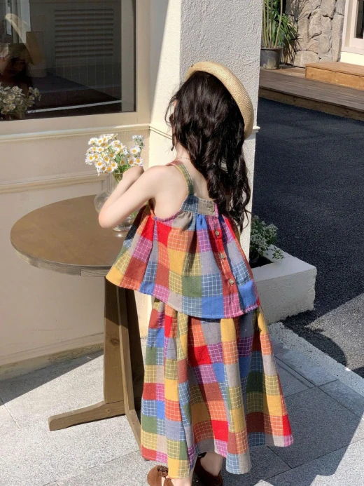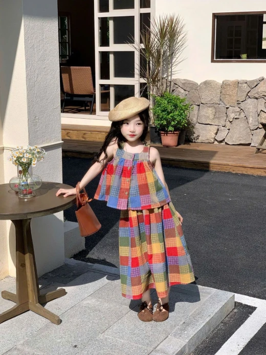 #2402c15 SET VÁY MAXI CARO SẮC MÀU Bé xinh – đồ chất – mẹ mê từ cái nhìn đầu tiên ✔Size : 90–140 🌸 giá 201k 🐬 chốt 24/2