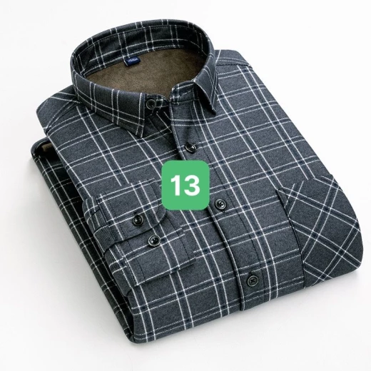 #1111m37 SƠ MI NAM LÓT LÔNG Sơ mi kẻ trẻ trung , lót lông vừa ấm vừa lịch sự rất dễ mặc Thiết kế dáng áo sơ mi basic đơn giản , Bên trong lót lông mềm dễ mặc ko bị cộm , giữ nhiệt tốt Trời lạnh các anh chỉ cần mặc một áo này thôi cũng đủ giữ ấm rồi nhé. 16 màu đánh số ✅Sz L-5XL ? giá 144k ? chốt 1111