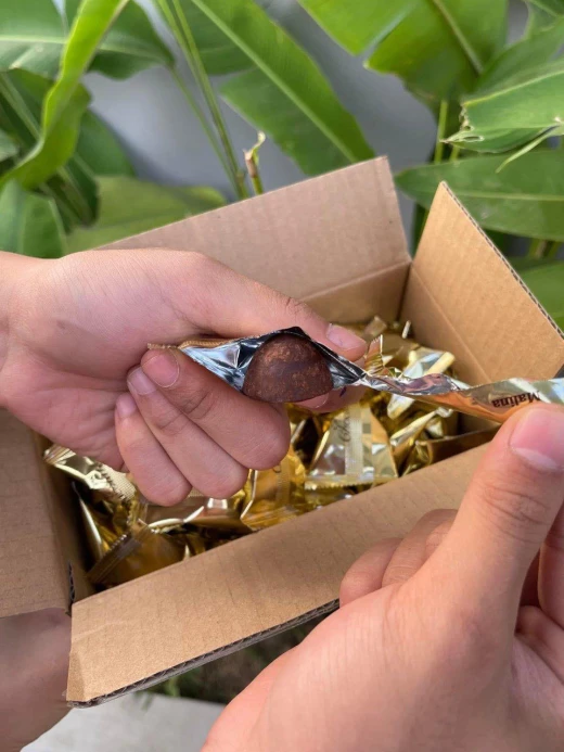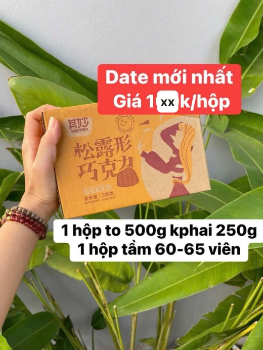 #1911b45 ‼️ ‼️ Socola tươi Truffle Kiemeo Món socola mà được lòng từ trẻ con- đến các chị có tuổi Phải nói là ngon tuyệt luôn vì có đủ vị: đắng- ngọt- k ngọt gắt- k bị lợ lợ- k bị bột bột khó nuốt ‼Nhiều hãng socola tươi- chỉ bán đúng hãng này mấy năm nay- mặc dù 1 năm bên trung ra bao nhiêu loại đồ ăn mới- nhưng món này gây thương nhớ cực luôn - hàng này vỏ hộp xấu thôi nhưng ăn ngon thật a Mỗi viên socola được bọc 1 túi- ăn đến đâu bóc đến đấy, k lo bị ướt hay bị hỏng- hạn sử dụng tầm 12 tháng cơ nên là cứ yên tâm Hàng chính hãng tmall mềm mịn, ngon, ngọt vừa và có vị đắng của socola ✅Em gom giá 1xxk cho hộp 500g cả nhà nhớ nhé- là 500g chứ kphai 250g như trên mạng 1 hộp tầm 60-65 viên cực ngon ======= chốt 19/11 giá 89k/1h