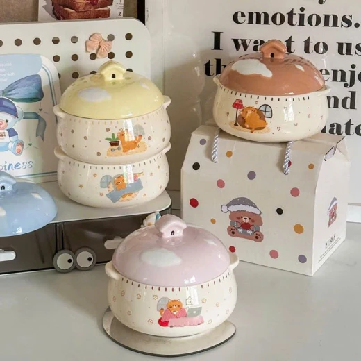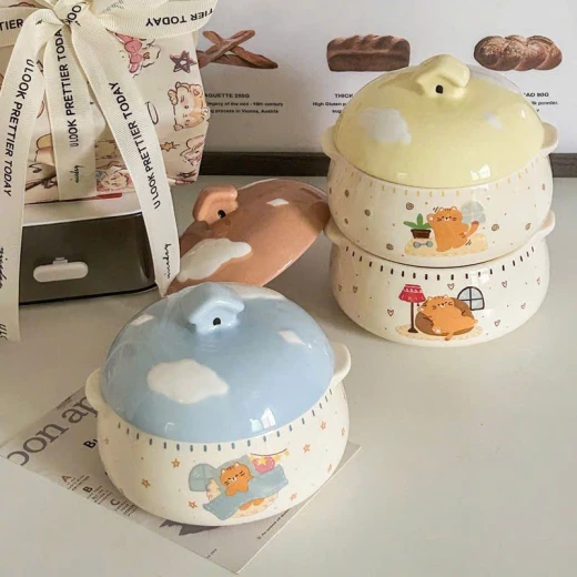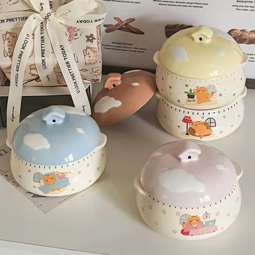 #1703c48 Thố hấp trứng,yến....có tay cầm bằng gốm sứ ,có nắp đậy. -dung tích 350ml -4 màu giá: #130k/c 🌸 giá 80k/c 🐬 chốt 17/3
