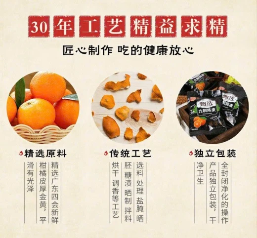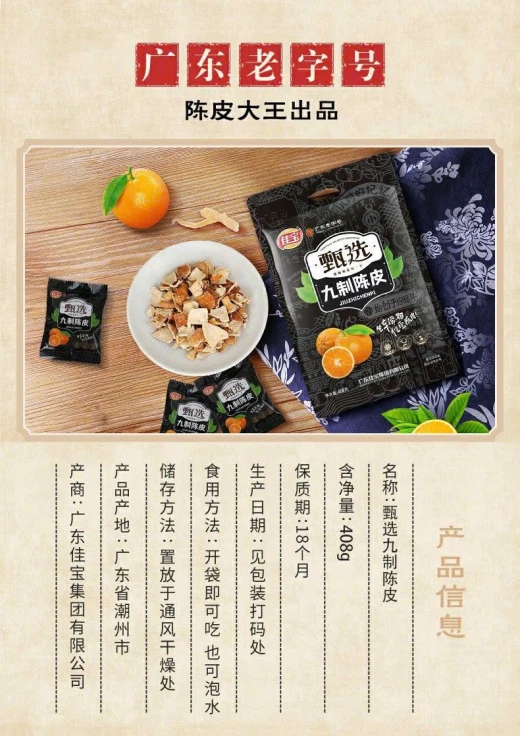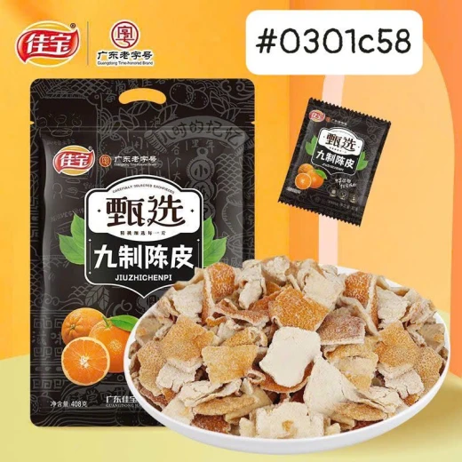 #0301c58 TRẦN BÌ QUẢNG ĐÔNG 宝 408g – Trần bì chín mùi, chuẩn vị Quảng Đông, hàng chính hãng Gia Bảo 甄选九制陈皮干大片 | Chuẩn vị – Dẻo thơm – Thanh ngọt 🌟 Đặc điểm nổi bật: • ✔️ Trần bì lên men tự nhiên, hậu vị ngọt thanh • ✔️ Miếng to – dày – dẻo, không quá chua • ✔️ Hỗ trợ tiêu hoá, giảm đầy hơi khó chịu • ✔️ Đóng túi nhỏ tiện dụng – ăn ngon, sạch sẽ • ✔️ Đặc sản Quảng Đông – hương cam truyền thống #149k/gói từ 2 gói còn #129k/gói 🌸 giá 105k 🐬 chốt 0301