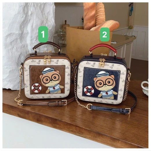 #1411b48 TÚI DA FORM VUÔNG HÌNH MÈO BEIBAOBAO Bên ngoài đẹp hơn ảnh 1000 lầnnn Hãng đnag sale lớn ạ, em tranh thủ gom Eo oiii hàng về quá đẹp, quá chỉnh chu từ đóng gói, đường may, chất liệu.. 100 điểm cho hãng luôn. Có khoá kéo không lo bị rơi đồ nữa ạ 2 màu đánh số 🌸 giá 282k 🐬 chốt 1411