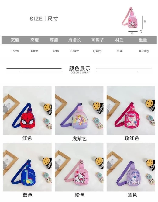#0301a08 Túi đeo chéo bao tử cho bé trai bé gái Xinh quá đi mất ?Zá siêu rẻ chỉ #65k/c Các con mang đi chơi , đi du lịch bao đẹp nha Vừa làm phụ kiện thời trang đáng yêu cho các bé vừa có thể đựng những vật nhỏ xinh xinh : đồ chơi , bút, kính , sữa …. Chất liệu vải dù sạch sẽ Hoạ tiệt hoạt hình toàn các nhân vật bé yêu thích đảm bảo bé sẽ thích mê ✔️ đủ mẫu đánh số ? giá 31k ? chốt 3/1