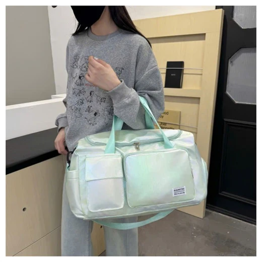 #2811b63 TÚI DU LỊCH PHONG CÁCH HÀN QUỐC HOLOGRAM Túi du lịch nữ phong cách Hàn Quốc với chất liệu hologram bắt sáng, hiện đại và nổi bật. 5 màu đánh số ✅Kt em để ở ảnh trong bài 🌸 giá 133k 🐬 chốt 28/11