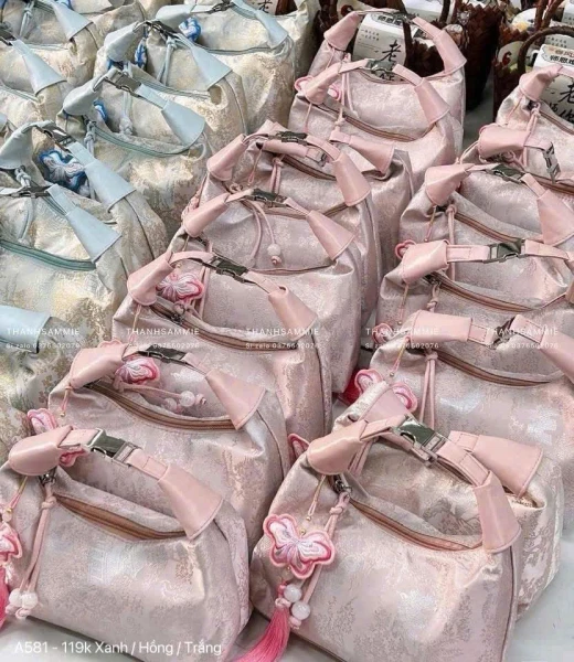 #1512b48 Mang ngay cốc trà sữa đến đây em đổi cho chiếc túi xách áo dài đỉnh nhất đây ạ 🤎 Mang ngayy 99k đến đây cho emmm 🪭. Outfit áo dài + túi đồ đó nói đii, hổng có cái nào mà có thể hợp hơn nữa áaa 😆 gom ngay kẻo muộn cho ce sắm tết dần ạaaaa 👋🏻👋🏻. Năm nào cũng phải mặc áo dài tết, mà áo dài k thể thiếu túi gấm đi kèm, năm nay e có mã này xinh iu mà rẻ lắm ce ui, đeo tết xong còn đeo được hàng ngày ạ Em gom tương tác hoy 9️⃣9️⃣ka/cái về tay Lẻ + 10k 3 màu: xanh, hồng, kem Màu sắc của sản phẩm thực tế có thể đậm or nhạt sáng or tối hơn ảnh do hiệu ứng ánh sáng & góc chụp sản phẩm Giá: 75 Chốt 1512