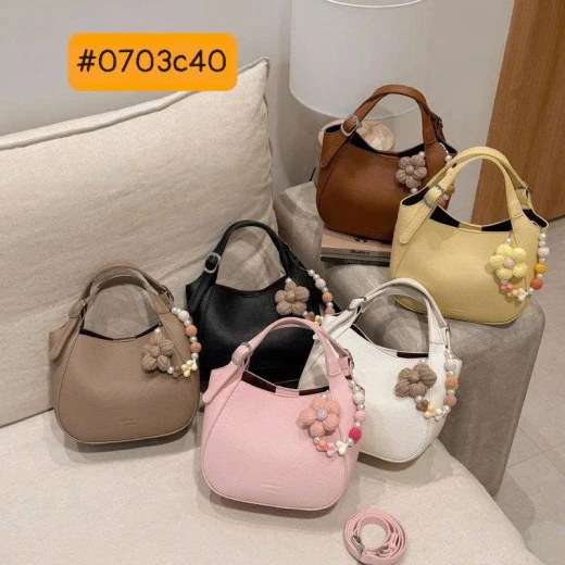 #0703c40 TÚI XÁCH CHARM HOA NGỌT NGÀO ‼ ‼ ‼ TÚI XÁCH CHARM HOA NGỌT NGÀO Thiết kế form mềm nữ tính, da vân cao cấp sang xịn. Điểm nhấn charm hoa + vòng hạt siêu xinh, đeo lên là nổi bật ngay. ✅️ 6 màu đánh số 🌸 giá 180k/ kèm charm 🐬 chốt 7/3
