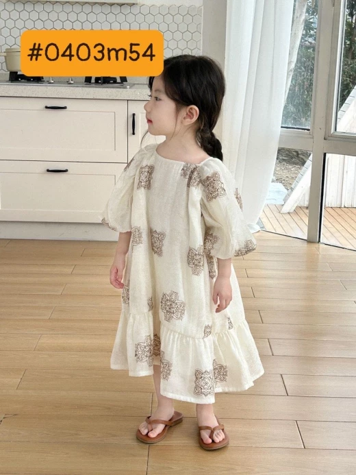 #0403m54 VÁY TƠ CỔ VUÔNG TAY BỒNG CHO BÉ GÁI ??? Váy tiểu thư điệu đà Mặc xinh và siêu dễ thương Kết hợp tinh tế với 2 màu trắng - hoạ tiết nâu tôn da, phù hợp trong mọi hoàn cảnh. Áo điệu đà với kết cấu tay bồng tiểu thư, điểm xuyết bèo đuôi cá tô lên nét đáng yêu cho cô gái nhỏ ❌size: 90-140 ?giá 237k Chốt 04.03