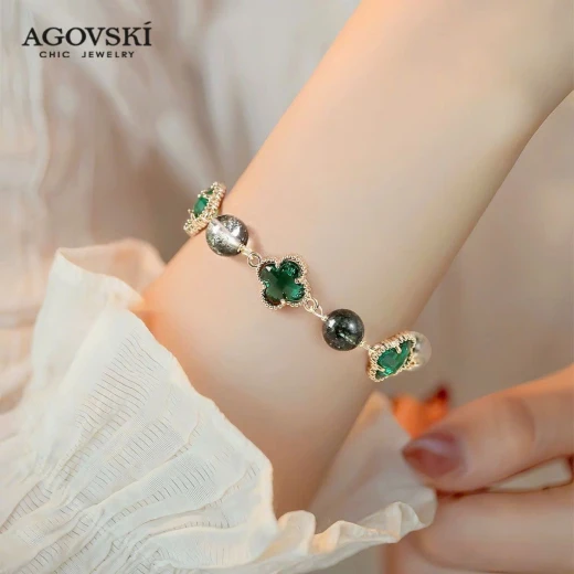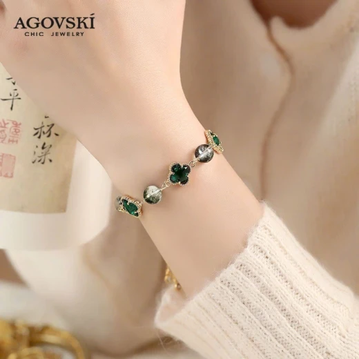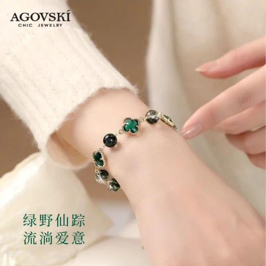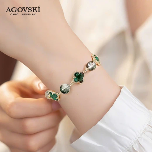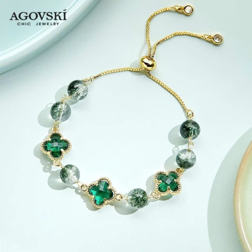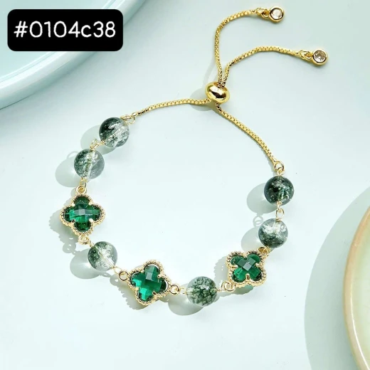#0104c38 VÒNG ĐÁ THẠCH ANH AGOVSKI vòng thạch anh xanh lá lên tay xinh lắm ạ 🌸 giá 146k 🐬 chốt 1/4